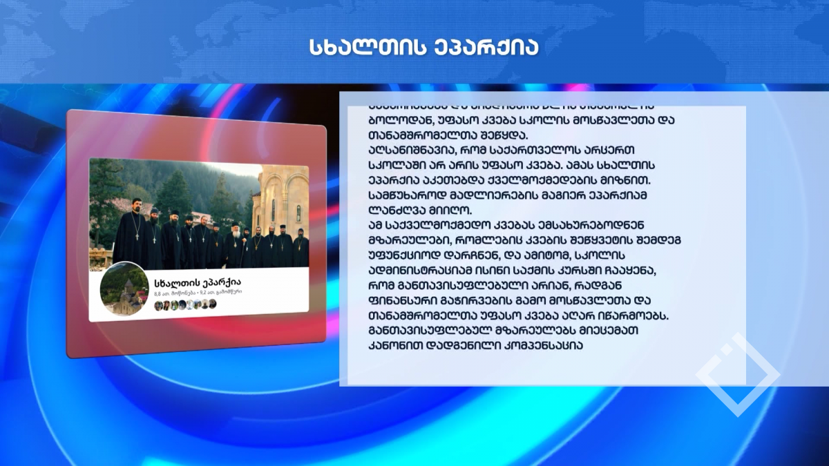 სხალთის ეპარქიას ყოფილი თანამშრომლები უმიზეზოდ სამსახურიდან გათავისუფლებაში ადანაშაულებენ. ხათუნა მიქელაძე იმ თანამშრომლების სიაში მოხდა, რომელიც ეპარქიამ სამსახურიდან დაითხოვა, ამის შესახებ კი მან სოციალურ ქსელში კოლექტიური პოსტი დაწერა. თავად ეპარქია კი აცხადებს, რომ თანამშრომლების დათხოვნის მიზეზი ფინანსური კრიზისია. რას ედავებიან სხალთის ეპარქიას თანამშრომლები და როგორია საპატრიარქოს პოზიცია ვნახოთ რეპორტაჟი.