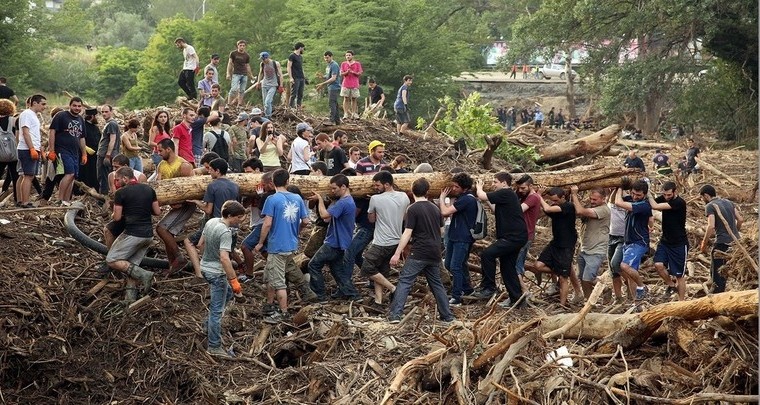 სტიქიის სალიკვიდაციო სამუშაოებში ათასობით ახალგაზრდა ჩაერთო. შიშველი ხელებით, ნიჩბებითა თუ ხელთათმანებით მოხალისეებმა დატბორილი ტერიტორიების გაწმენდა დაიწყეს.