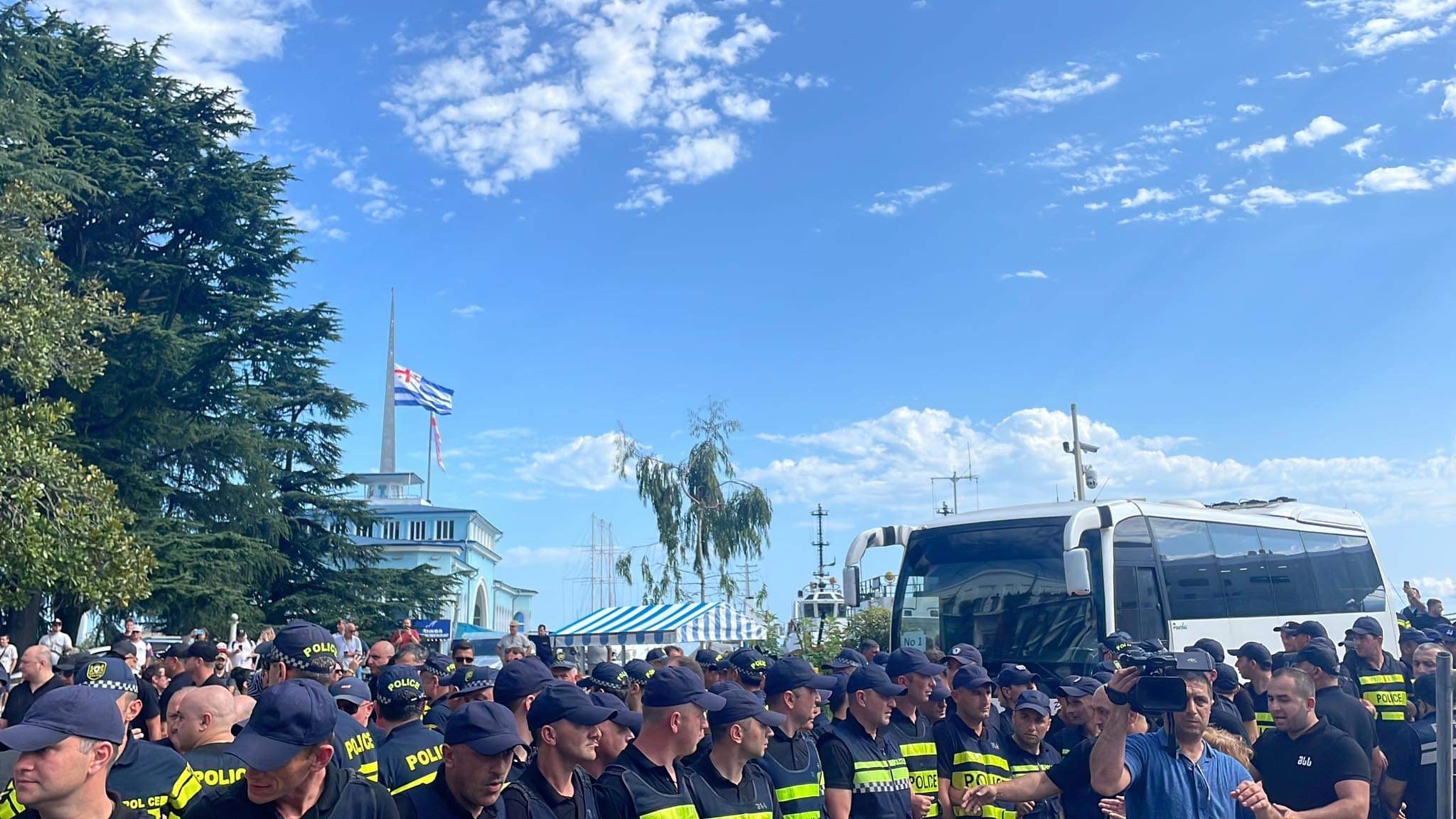 საკრუიზო გემიდან მგზავრები ავტობუსით გამოჰყავთ - აქციაზე კიდევ რამდენიმე პირი დააკავეს