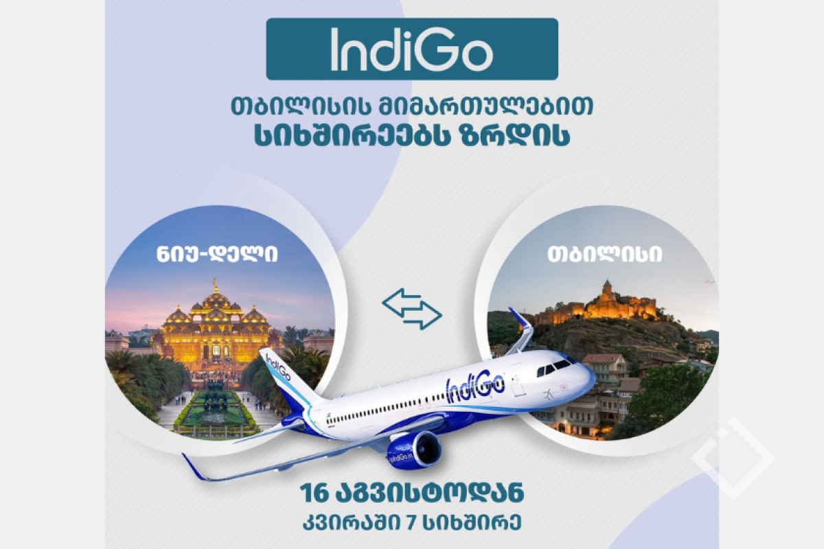 აზიის ყველაზე დიდი დაბალბიუჯეტიანი ავიაკომპანია საქართველოსთან რეგულარული პირდაპირი ავიარეისების რაოდენობას ზრდის - „ინდიგო" ნიუ დელი - თბილისი - ნიუ დელის საჰაერო ხაზზე რეისებს კვირაში სამი სიხშირის ნაცვლად, შვიდჯერ შეასრულებს. ინფორმაციას ეკონომიკისა და მდგრადი განვითარების სამინისტრო ავრცელებს.