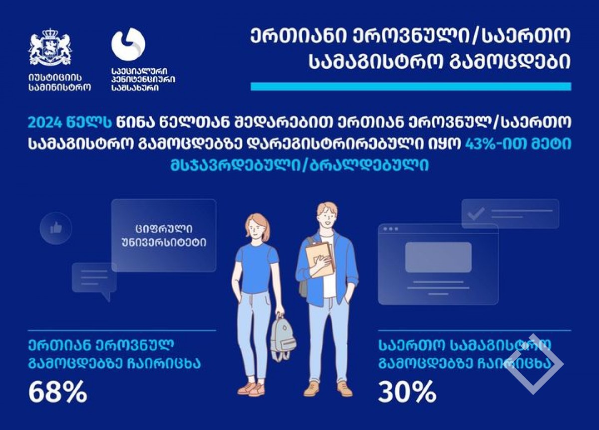 სპეციალური პენიტენციური სამსახურის ინფორმაციით, 2024 წელს წინა წელთან შედარებით ერთიან ეროვნულ და საერთო სამაგისტრო გამოცდებზე დარეგისტრირებული იყო 43% -ით მეტი ბრალდებული/მსჯავრდებული.