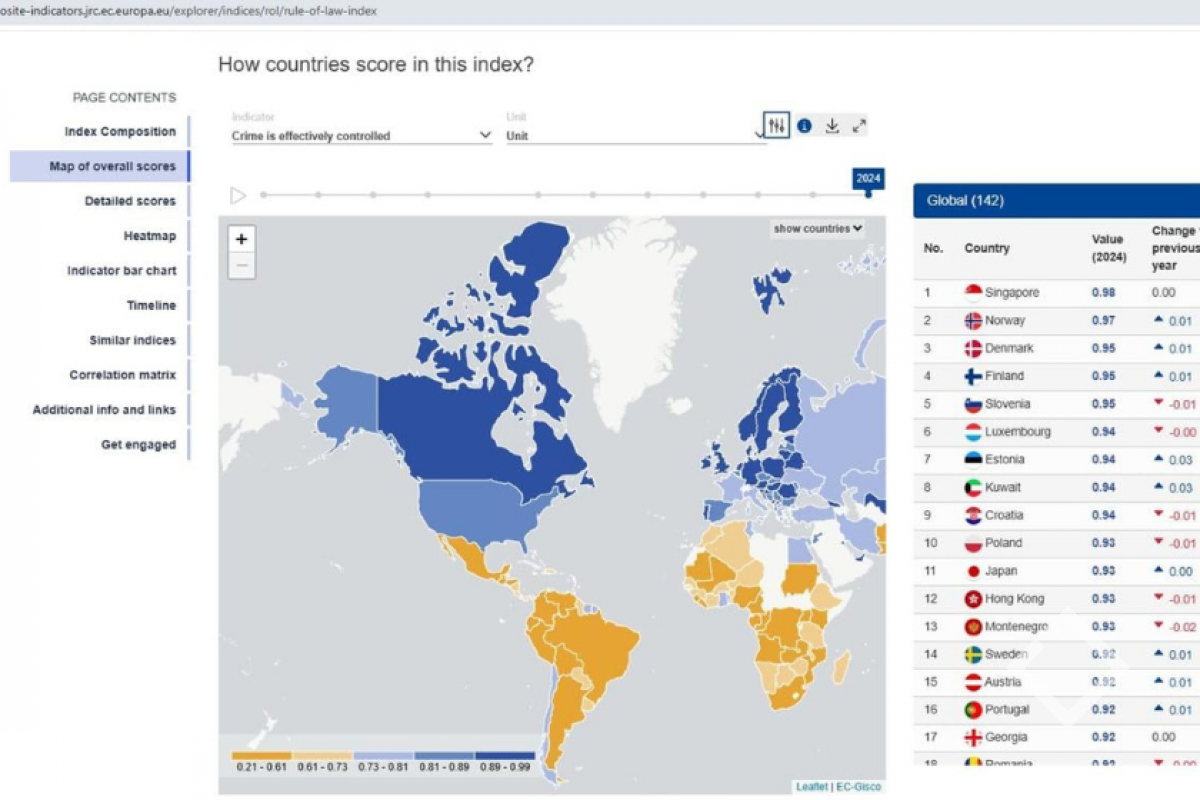 „დანაშაულის კონტროლის ეფექტურობით მსოფლიოში სინგაპური, ევროპაში კი ნორვეგია ლიდერობს.