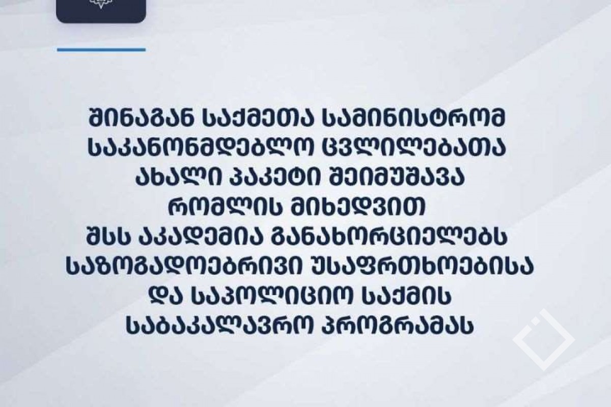 შსს-მ საკანონმდებლო ცვლილებათა ახალი პაკეტი შეიმუშავა, რომლის მიხედვით შსს აკადემია საზოგადოებრივი უსაფრთხოებისა და საპოლიციო საქმის საბაკალავრო პროგრამას განახორციელებს
