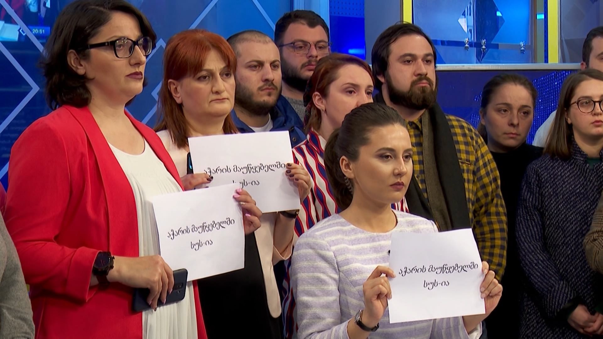მაუწყებელში სუს-ია ამ სლოგანით, აჭარის მაუწყებლის ჟურნალისტებმა პირდაპირ ეთერში, პროტესტი ერთ წუთიანი დუმილით გამოხატეს.