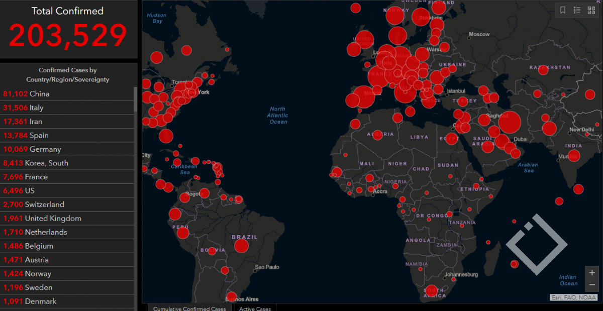 მსოფლიოში კორონავირუსით ინფიცირებულთა რიცხვმა 200 ათასს გადააჭარბა.  მათგან 8 ათასი ადამიანი დაიღუპა.  გამოჯანმრთელდა 80 ათასზე მეტი. ვირუსი 157 ქვეყანაშია გავრცელებული.  დღეს ყველაზე საგანგაშო მდგომარეობა ევროპაშია.