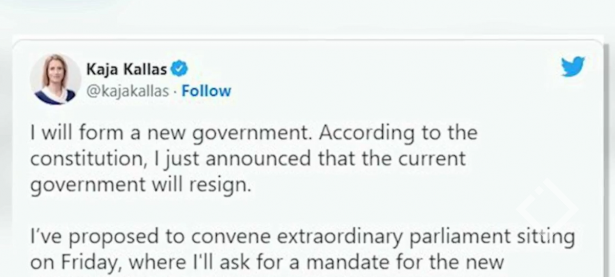 ესტონეთის პრემიერმა ტვიტერში განცხადებაც გაავრცელა, რომელშიც განმარტავს, რომ ახალი მთავრობის ფორმირებისთვის მოქმედი უნდა გადადგეს.